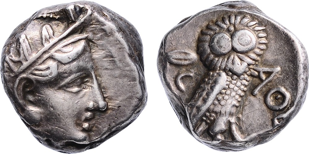 Athena. 449-413 BC. Tetradrachme, Athena Attica, obv. Portrait of Athena, rev. owl. S.2526. VF+.