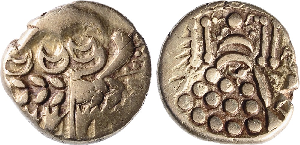 Britain. 65 BC-45 AD. Stater Durotriges. Stater gold, 6,03 gr. Obv. Portrait of Apollo to the right, rev. Celtic horse to te left. VF. Ex. MPO May 2012/4.