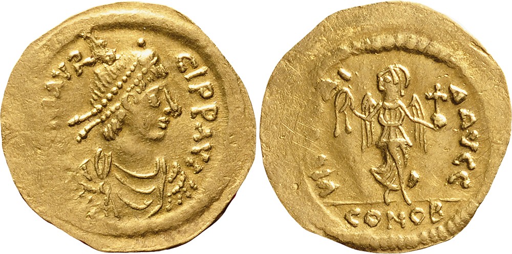 Byzantine empire. 582-602. Simissis gold. Mauricius Tiberus. VF/XF.