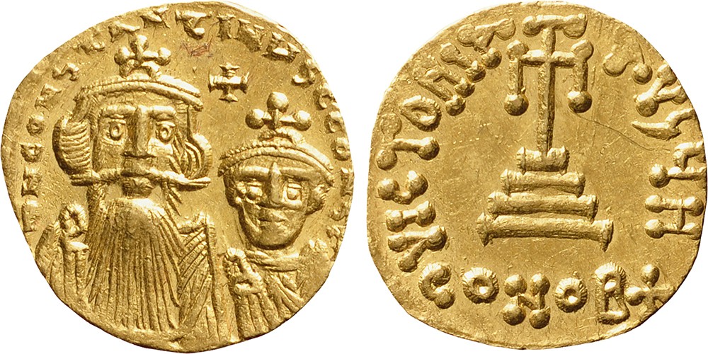 Byzantine empire. 654-659. Solidus gold. Constans II and Constantinus IV. XF.