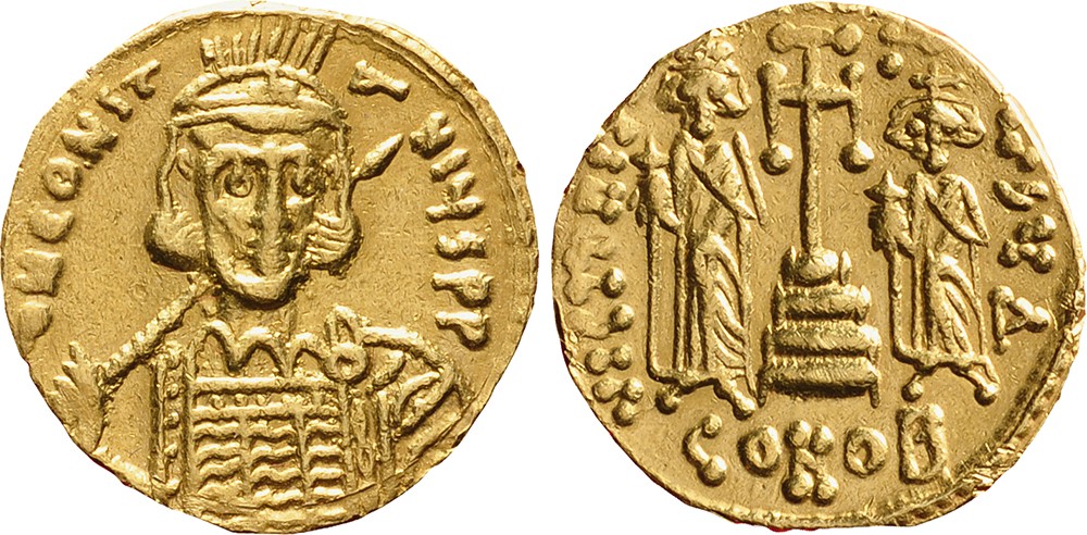 Byzantine empire. 668-685. Solidus gold. Constantinus IV. VF.