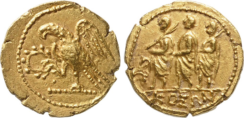 Olbia. Ca. 50 BC. Stater gold. Magistrate between 2 lictors to the left. Rev. Eagle with scepter. Lusterous XF. Ex. Schulman 345/403.