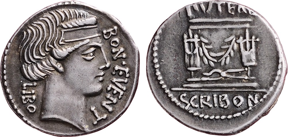 Roman Republic. Ca. 62 BC. Denarius. L. Scribonius Libo. XF.