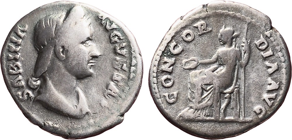 Roman Empire. 128-136 AD. Denarius. Sabina. VF.