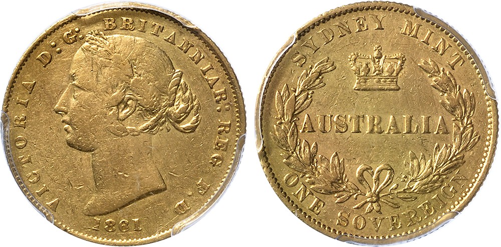 Australia. Sovereign gold 1861. PCGS Genuine Cleaning XF details.
