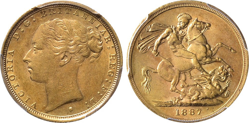 Australia. Sovereign gold 1887-S. PCGS AU58.