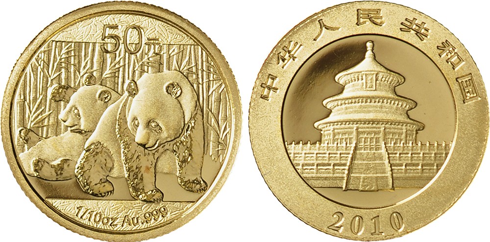 China. 50 Yuan gold 2010. 1/10 ounce gold. Proof.