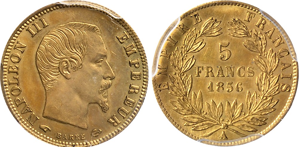 France. 10 Francs gold 1856-A. PCGS MS63.