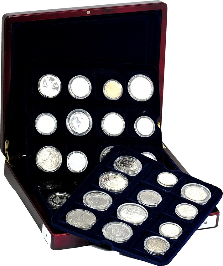 World. Box with 36 coins, mostly silver.