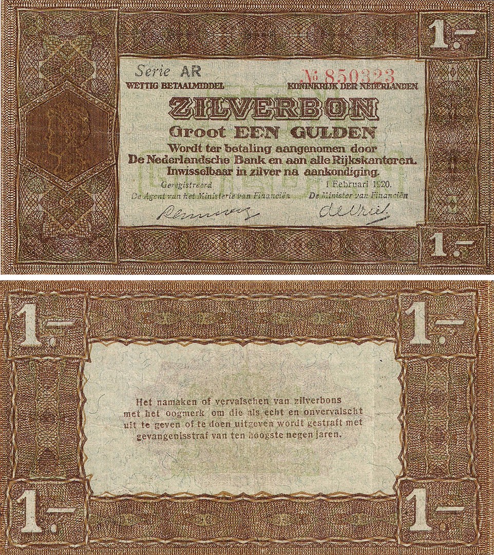 1 Gulden 1920 zilverbon. Almanak 03-1b. Zeer fraai+.