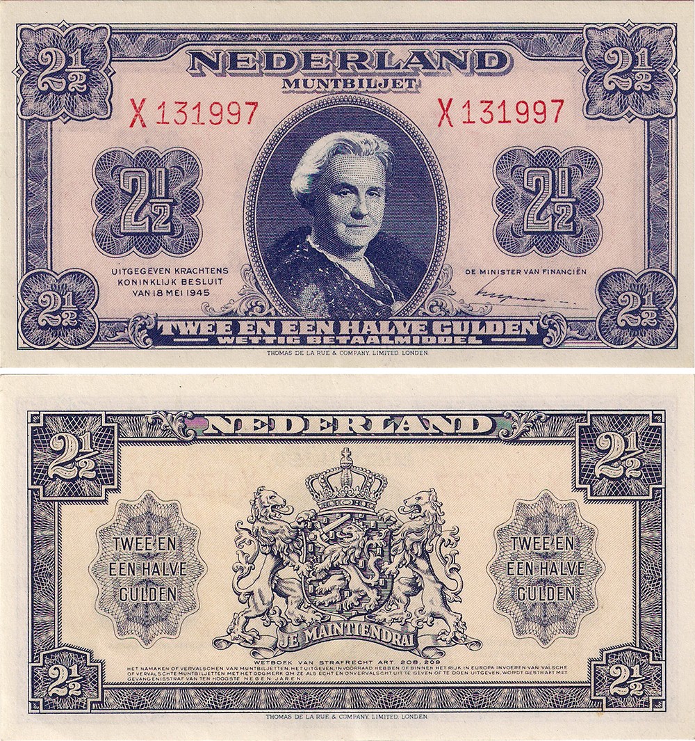 2 1/2 Gulden 1945 muntbiljet. Almanak 15-1d. UNC-.