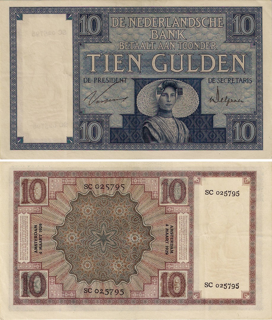 10 Gulden 1924 bankbiljet. Almanak 39-2b. Prachtig-.