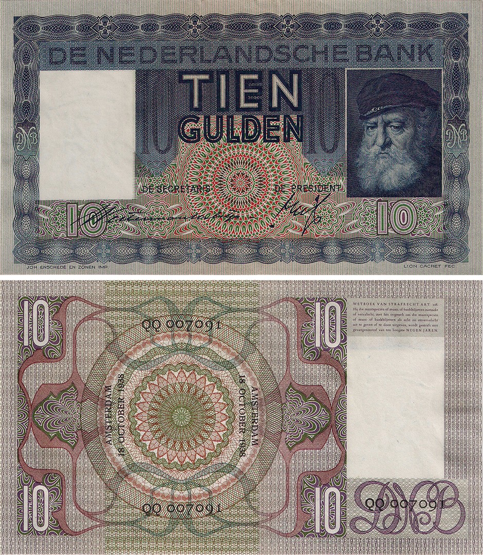 10 Gulden 1933 bankbiljet. Almanak 40-1a. UNC.