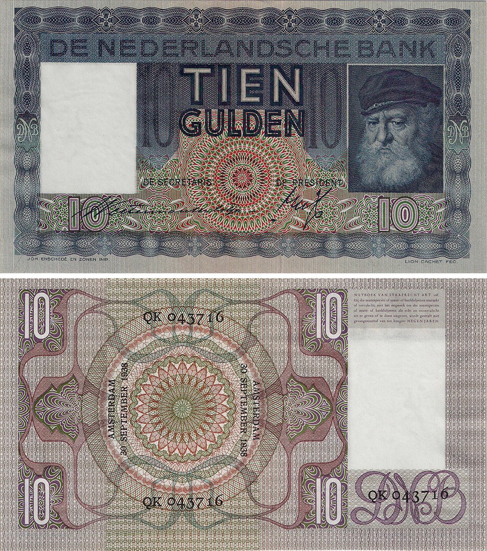 10 Gulden 1933 bankbiljet. Almanak 40-1a. Prachtig+.