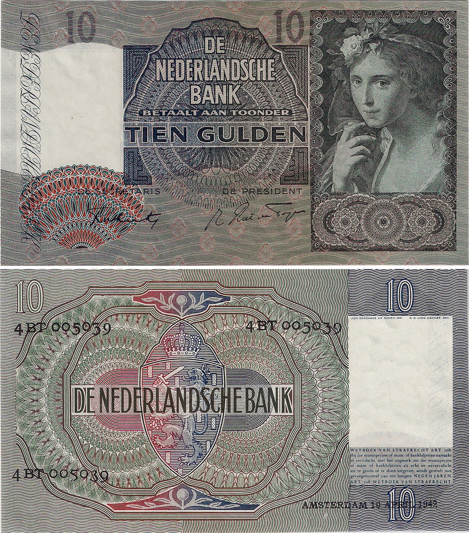 10 Gulden 1940-II bankbiljet. Almanak 42-2. UNC.