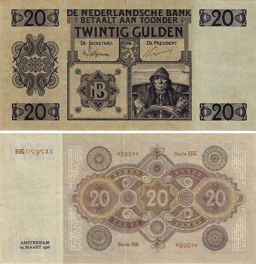 20 Gulden 1926 bankbiljet. Almanak 57-1a. Zeer fraai/prachtig.
