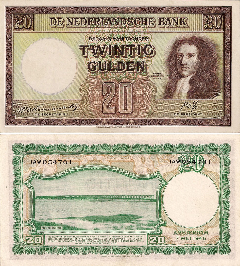 20 Gulden 1945 bankbiljet. Almanak 59-1. Vrijwel UNC.