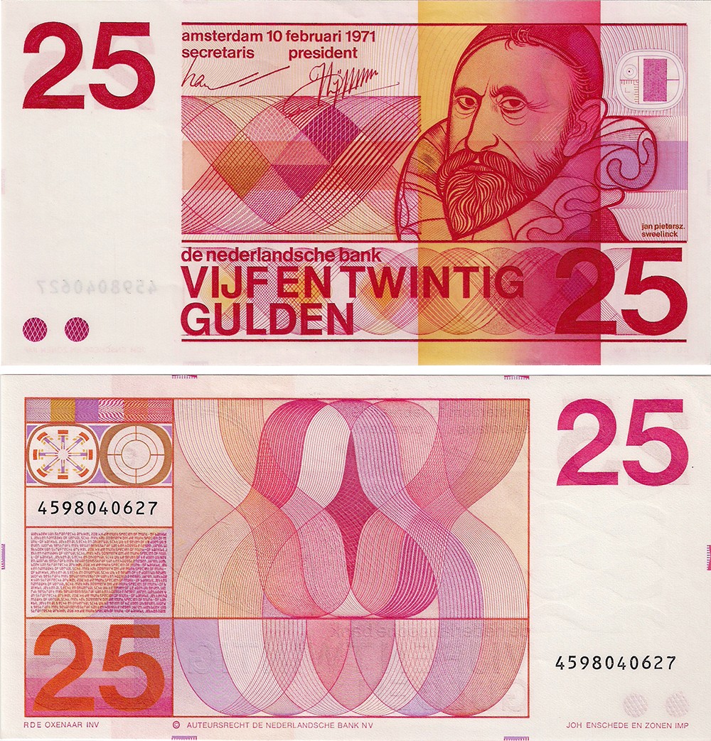 25 Gulden 1971 bankbiljet. Almanak 84-1. Serie 4598. UNC.
