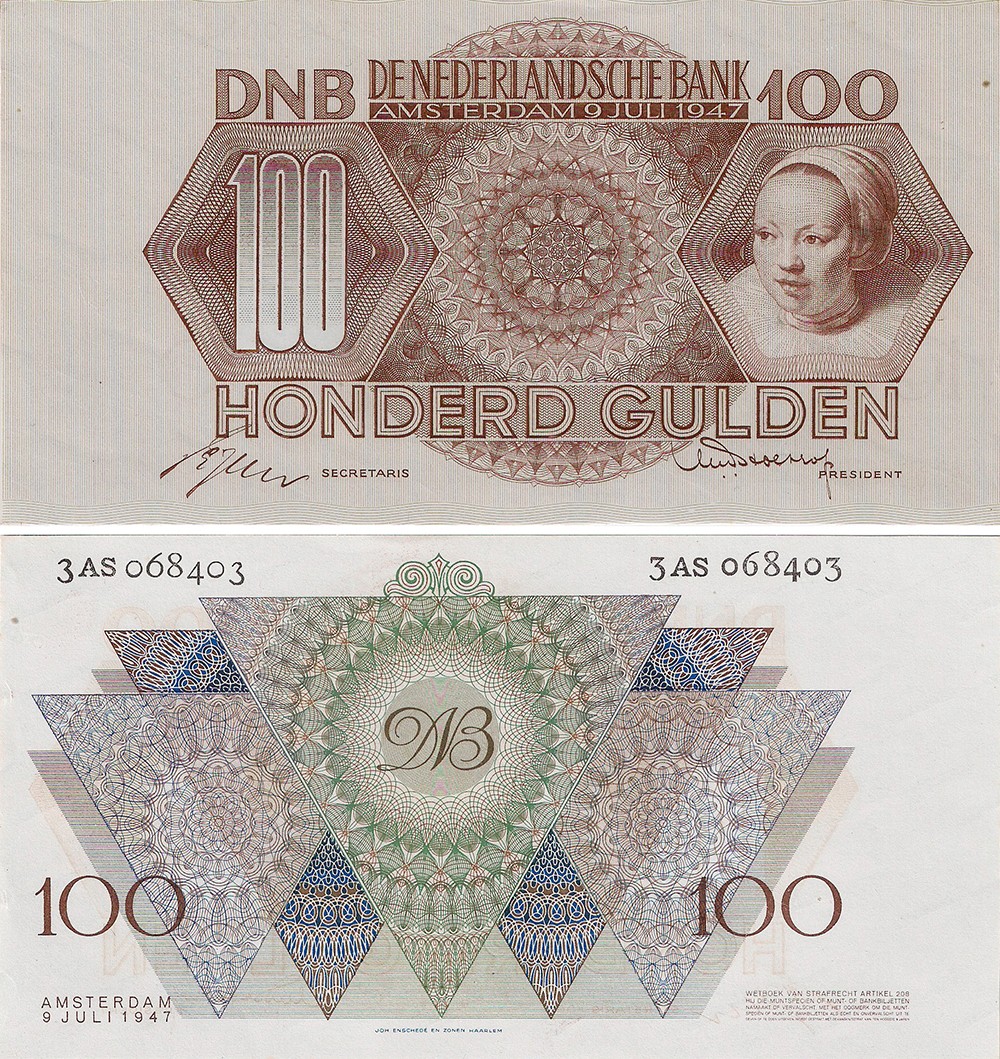 100 Gulden 1947 bankbiljet. Almanak 120-1. Serie 3 AS 068403. UNC-.