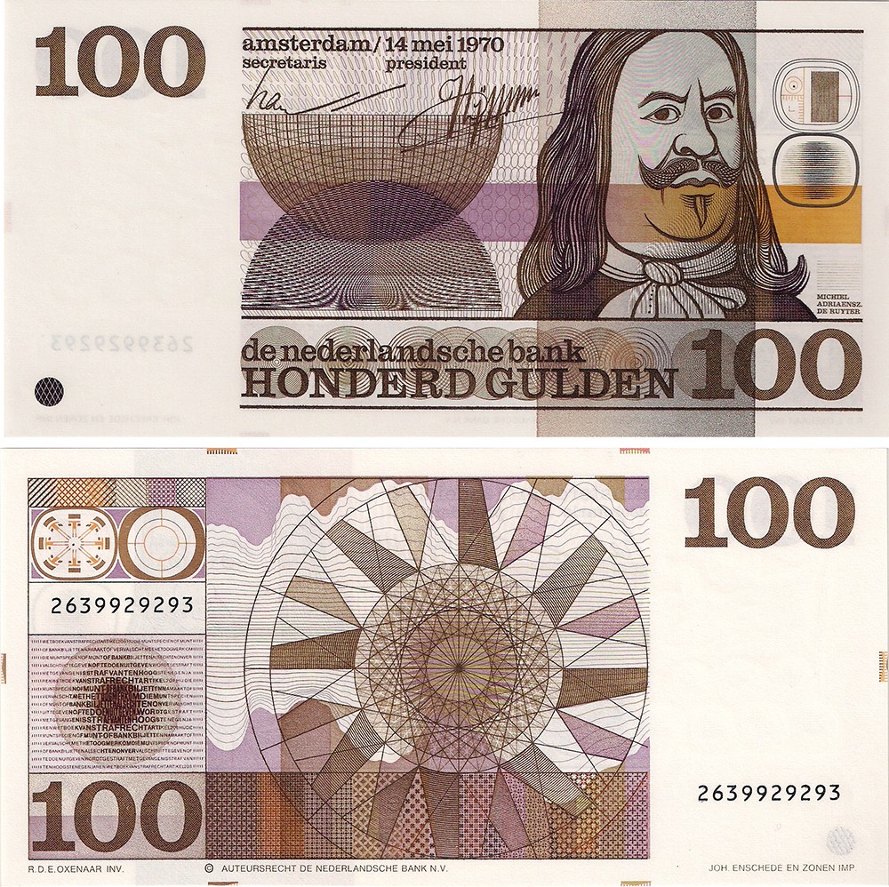 100 Gulden 1970 bankbiljet. Almanak 122-1. Serie 2639. UNC.