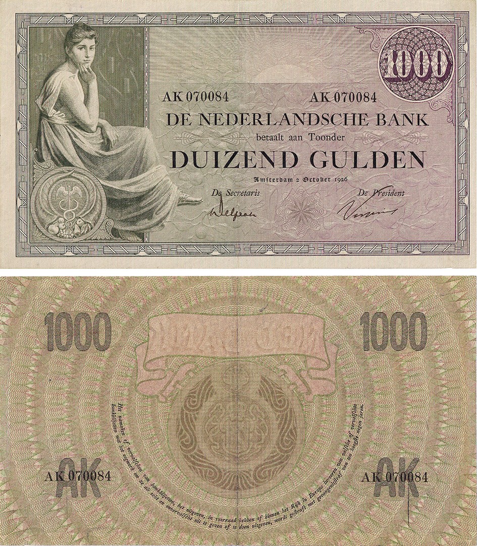 1000 Gulden 1926 bankbiljet. Almanak 152-1. Zeer fraai.