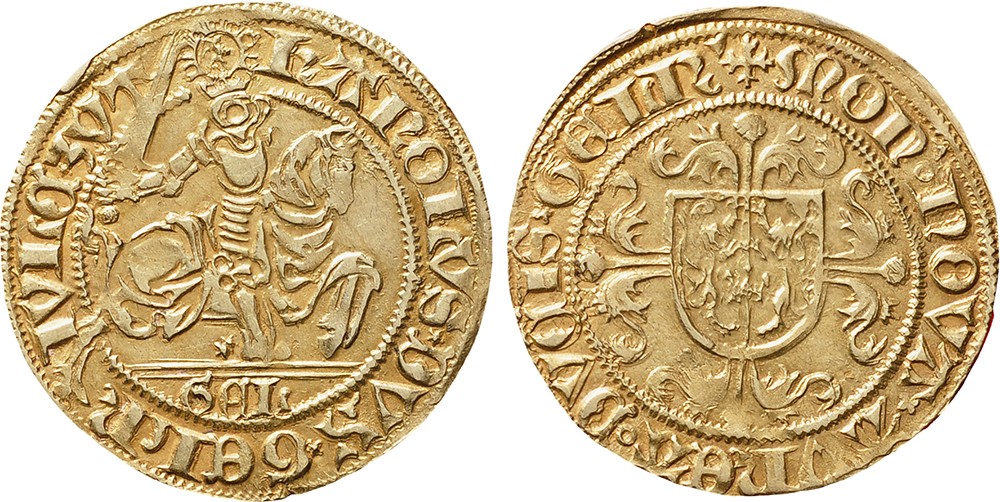 Karel van Egmond 1492-1538. Goudgulden z.j. Prachtig. Ex. Schulman 329/4.