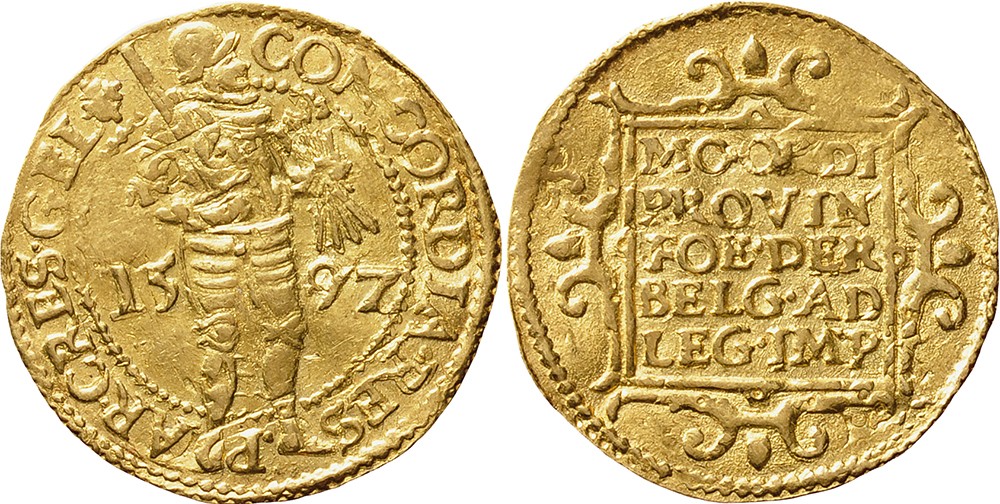 Gouden dukaat 1597. Cnm. 2.17.77; D.649. Zeer fraai/prachtig.
