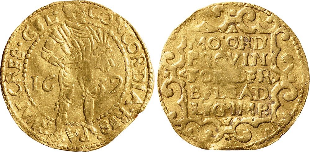 Gouden dukaat 1639. Cnm. 2.17.77; D.649. Zeer fraai.