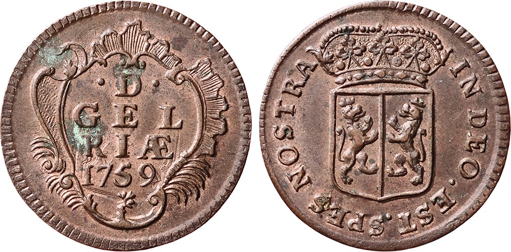 Duit 1759. Cnm. 2.17.195. FDC. Originele kleur.
