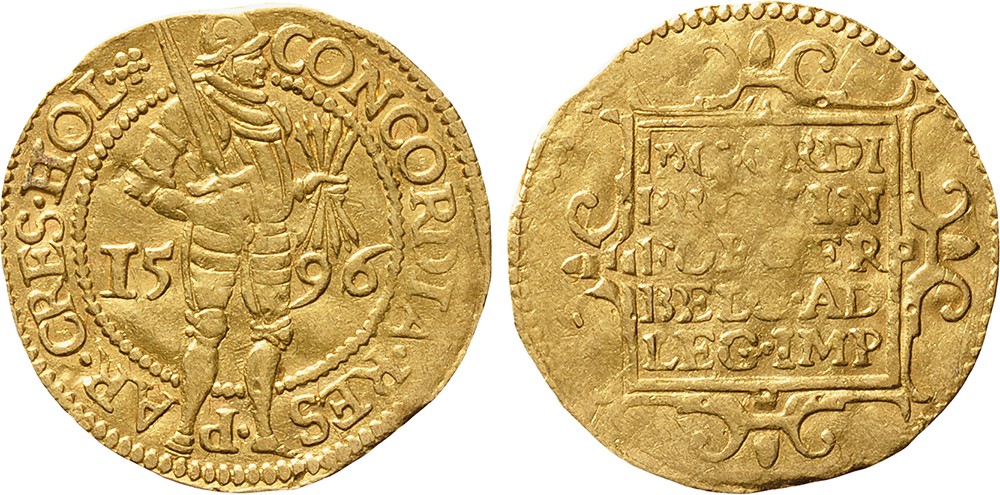 Gouden dukaat 1596. Cnm 2.28.53; D.774. Zeer fraai.