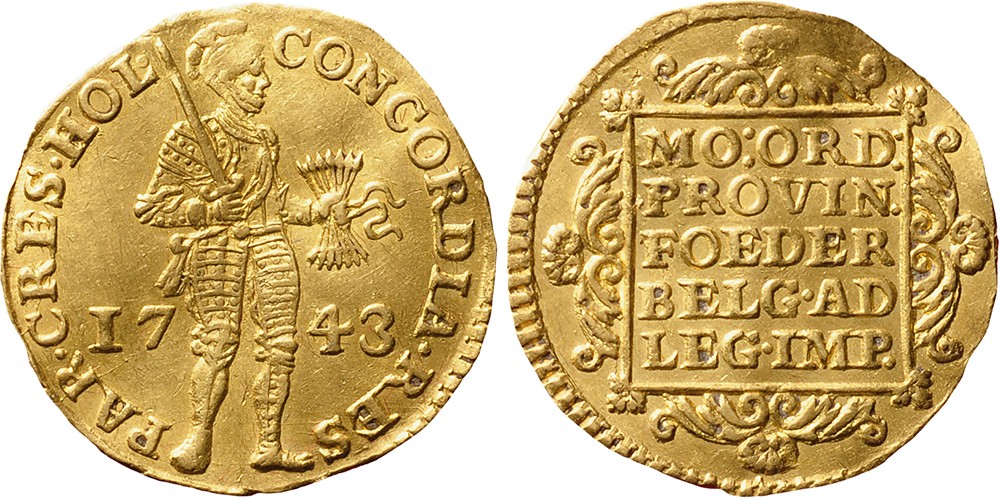 Gouden dukaat 1743. Cnm 2.28.54; D.775. Zeer fraai/prachtig.