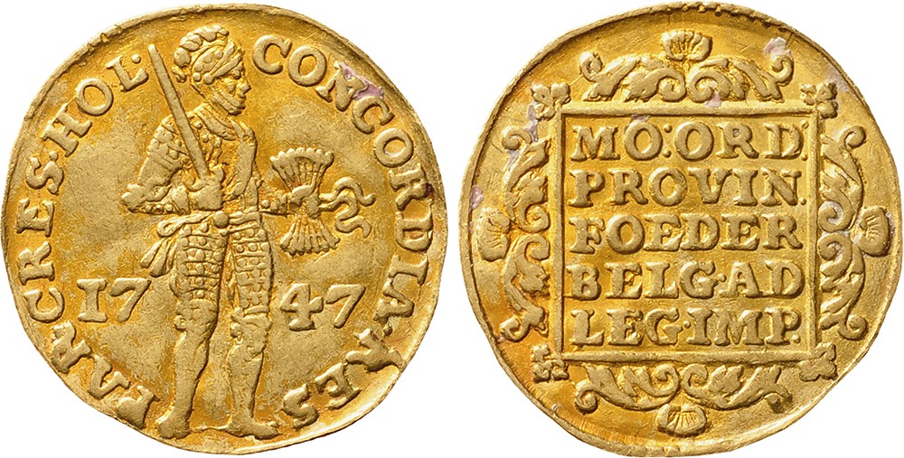 Gouden dukaat 1747. Cnm 2.28.54; D.775. Zeer fraai.