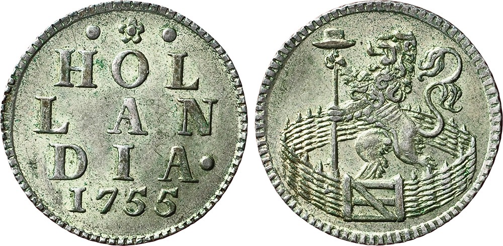 Duit zilver 1755. Cnm. 2.28.126. Prachtig.