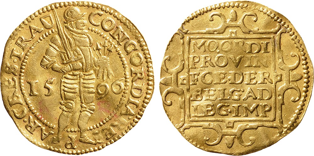 Gouden dukaat 1596. Cnm. 2.43.42; D.963. Zeer fraai/prachtig.