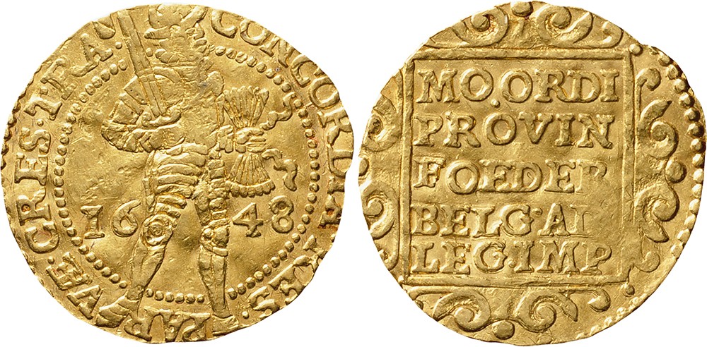 Gouden dukaat 1648. Cnm. 2.43.43; D.963. Zeer fraai.