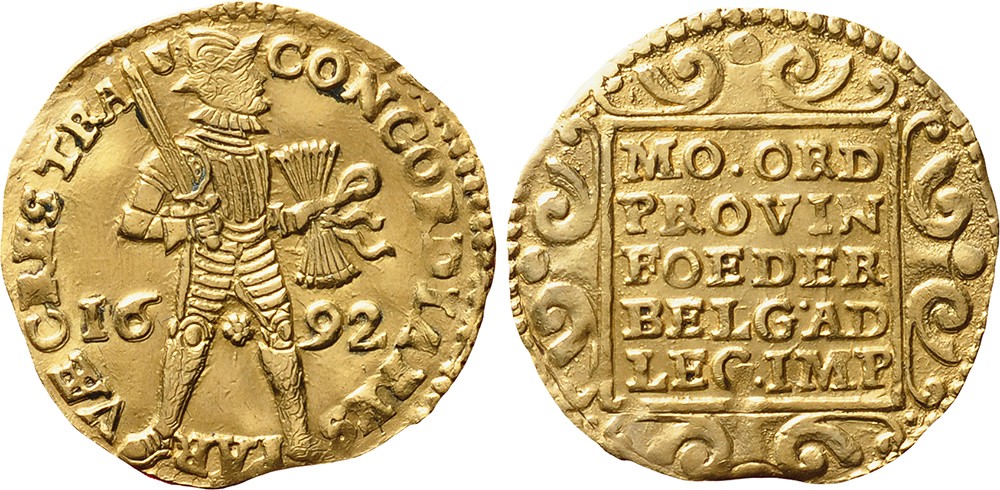 Gouden dukaat 1692. Cnm. 2.43.44; D.963. Zeer fraai+.