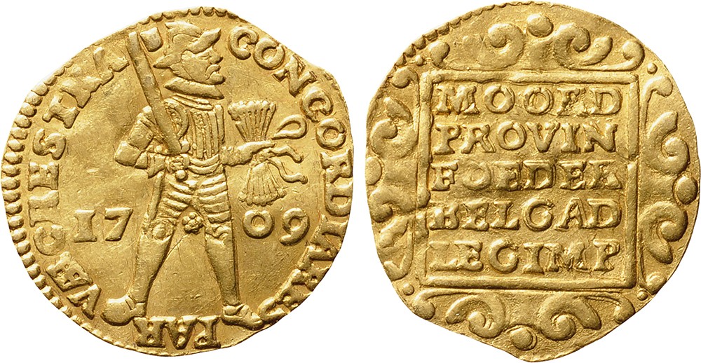 Gouden dukaat 1709. Cnm. 2.43.44; D.963. Zeer fraai+.