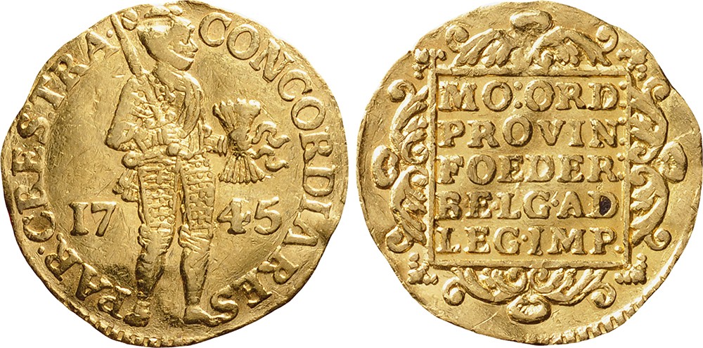 Gouden dukaat 1745. Cnm. 2.43.46; D.965. Zeer fraai.
