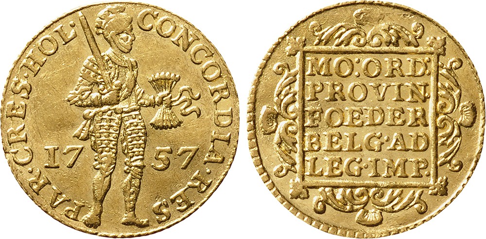Holland. Gouden dukaat 1757. Cnm. 2.43.46; D.965. Prachtig.