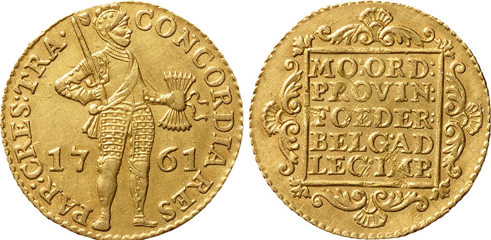 Gouden dukaat 1761. Cnm. 2.43.46; D.965. Zeer fraai/prachtig.