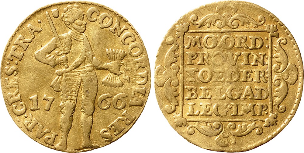 Gouden dukaat 1766. Cnm. 2.43.46; D.965. Zeer fraai.