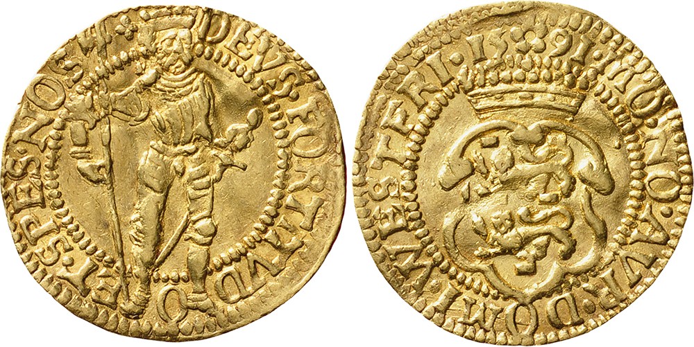 Hongaarse gouden dukaat 1591. Cnm. 2.46.6; D.833. Zeer fraai+.