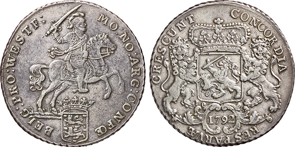 Dukaton of zilveren rijder 1792. Cnm. 2.46.41. Zeer fraai.