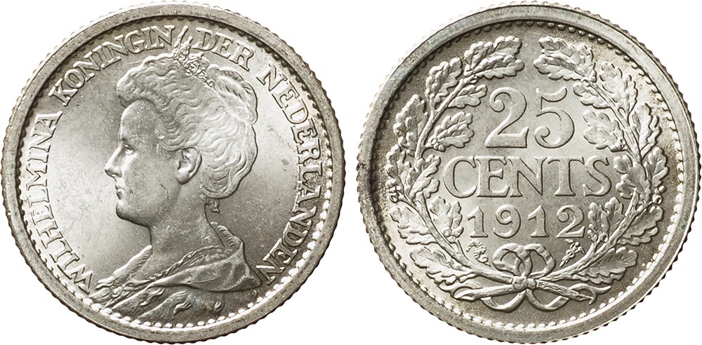 25 Cent 1912. FDC. Mooie rustige zilverkleur. Topstukje!