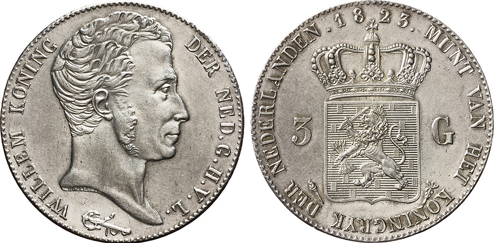 3 Gulden 1823U. Sch.245. Schaars jaar. FDC.