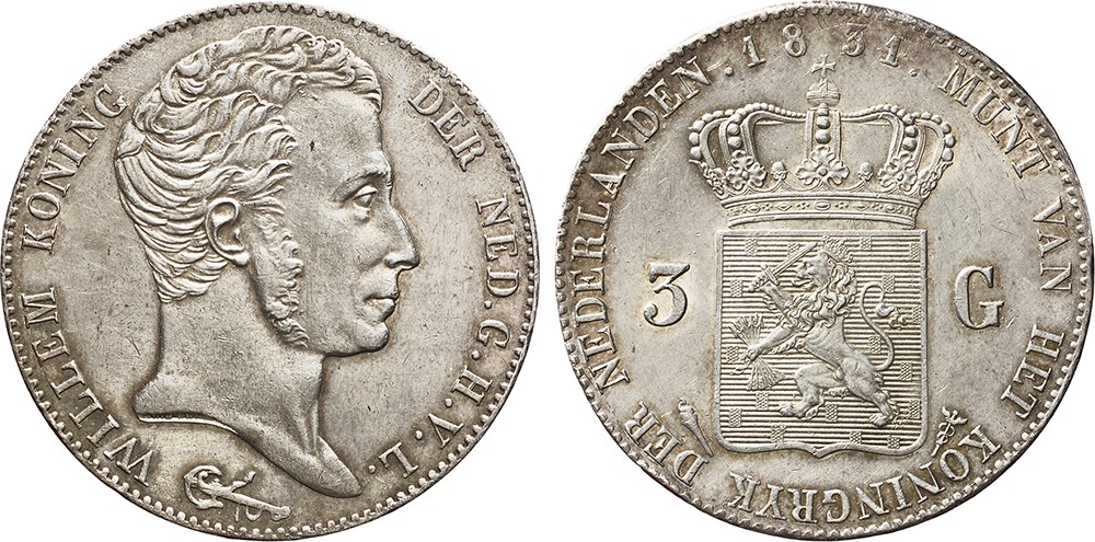 3 Gulden 1831/24U. Sch.249a. Prachtig.