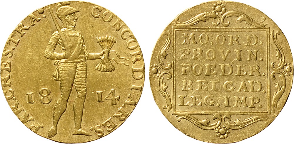 Gouden dukaat 1814. Zonder mmt. Sch.200. Prachtig.