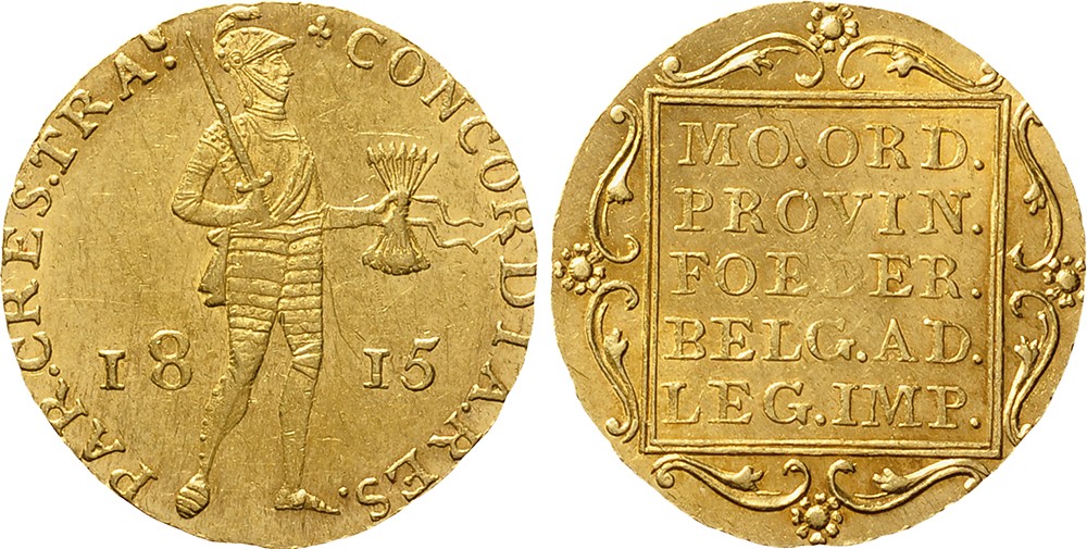 Gouden dukaat 1815. Mmt. Klaverblad. Sch.202. Prachtig/UNC.