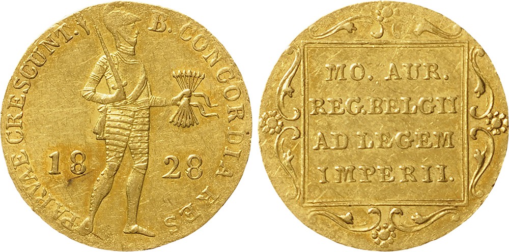 Gouden dukaat 1828 B. Sch.229. Prachtig-. Ex. Laurens Schulman 28/918.
