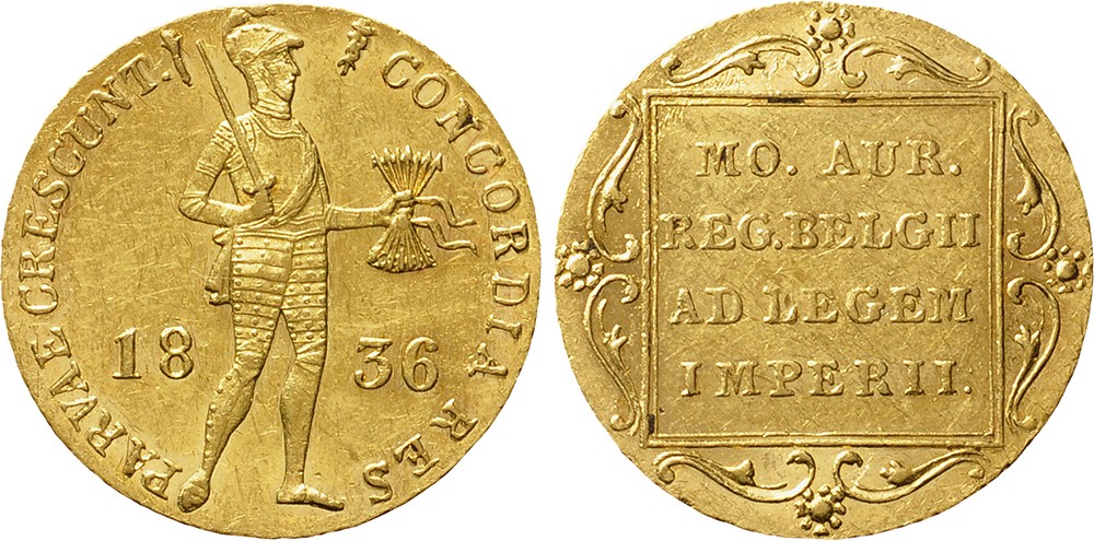 Gouden dukaat 1836. Sch.220. Prachtig+.